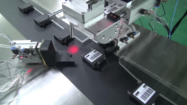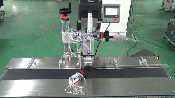 3、在產(chǎn)品達(dá)到測(cè)物電眼前,貼標(biāo)機(jī)標(biāo)頭整體機(jī)構(gòu)已經(jīng)在按照要求進(jìn)行標(biāo)簽打印,
