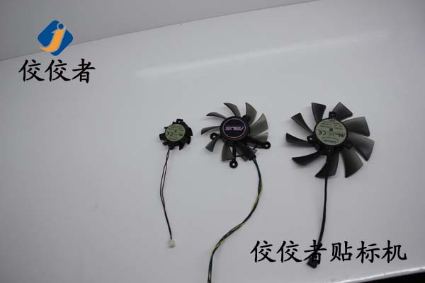 圖片中的產品是,電腦內置散熱器中的電風扇,上圖中分別有三種不同直徑,用于筆記本電腦、一體機和臺式電腦中,尺寸比較固定,只有三種。客戶所用的標簽為不干膠標簽,尺寸也是三種,分別對應不同直徑的散熱電風扇。初步判斷,上圖中的樣品,可以用同一臺貼標簽機對這三個不同直徑的散熱電風扇進行貼標,以減少客戶的購機成本。能貼散熱器電風扇有產品是我公司標準機中的半自動平面貼標機和全自動平面貼標機。