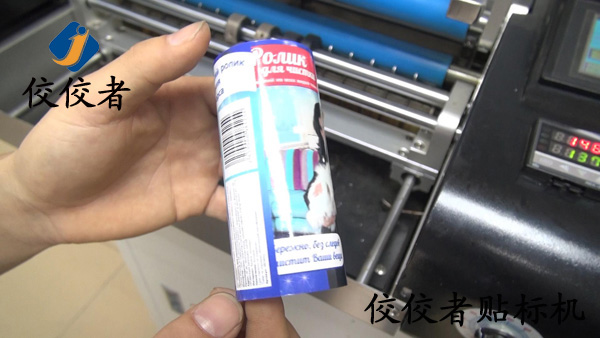下圖是膠筒(塑料小圓筒)貼標(biāo)機貼標(biāo)樣品圖片: