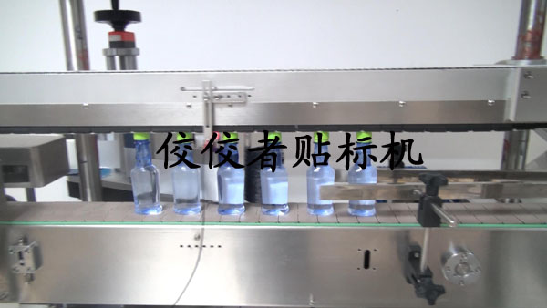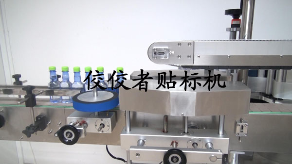上圖是貼標產品在人工的配合或者銜接流水線下放上了傳輸帶,并在傳輸帶上前進.在傳輸過程中設置了一個分瓶輪,用于將貼標產品進行等距離分開,高臻智能貼標機在這一點上做的非常出色。